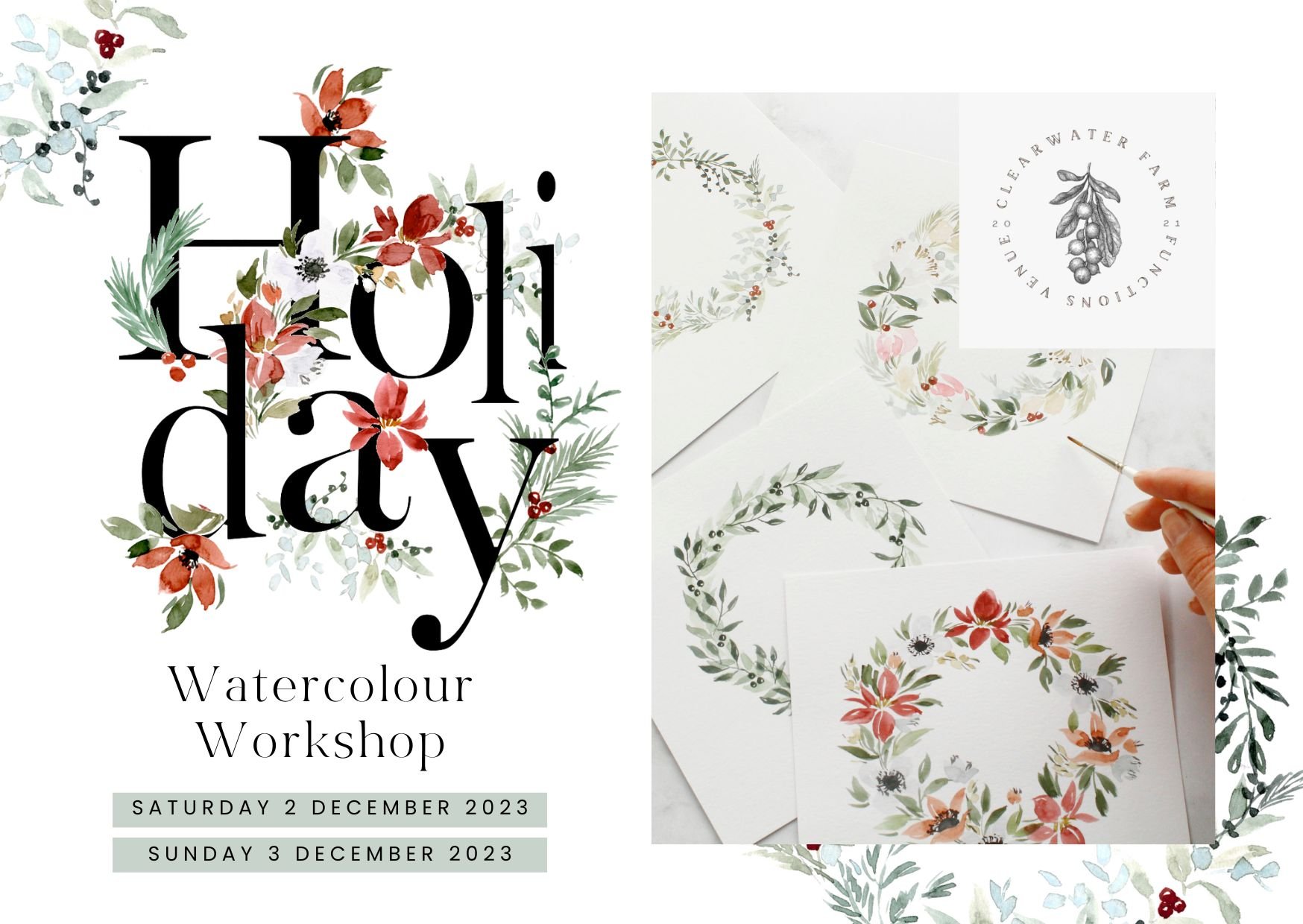 - Watercolour Wreath: Learn to compose holiday wreath designs.